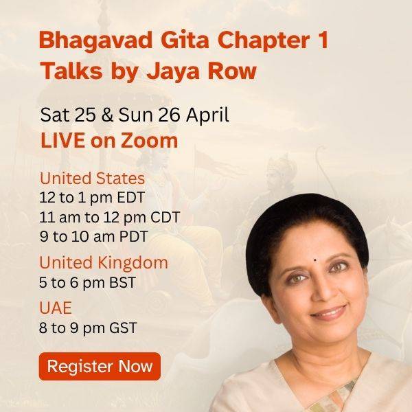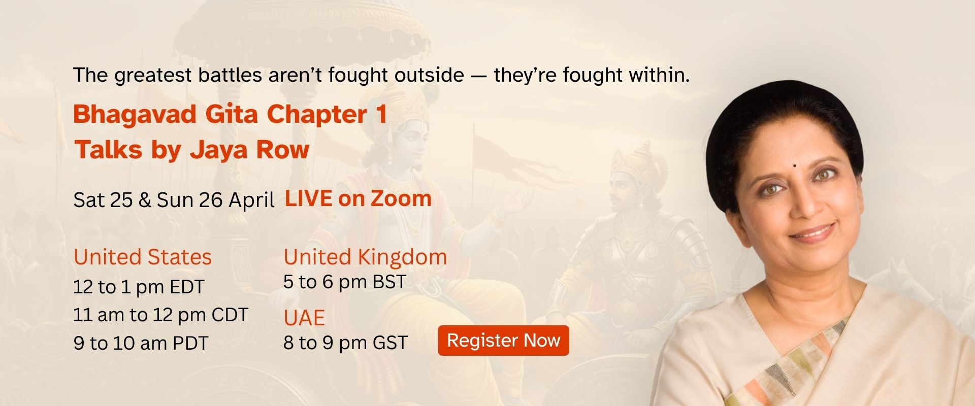 Jaya Row is one of the world’s most influential speakers on Indian philosophy, Vedanta. She is a well-loved spiritual leader whose expositions on Vedanta touch the mind and uplift the intellect.
